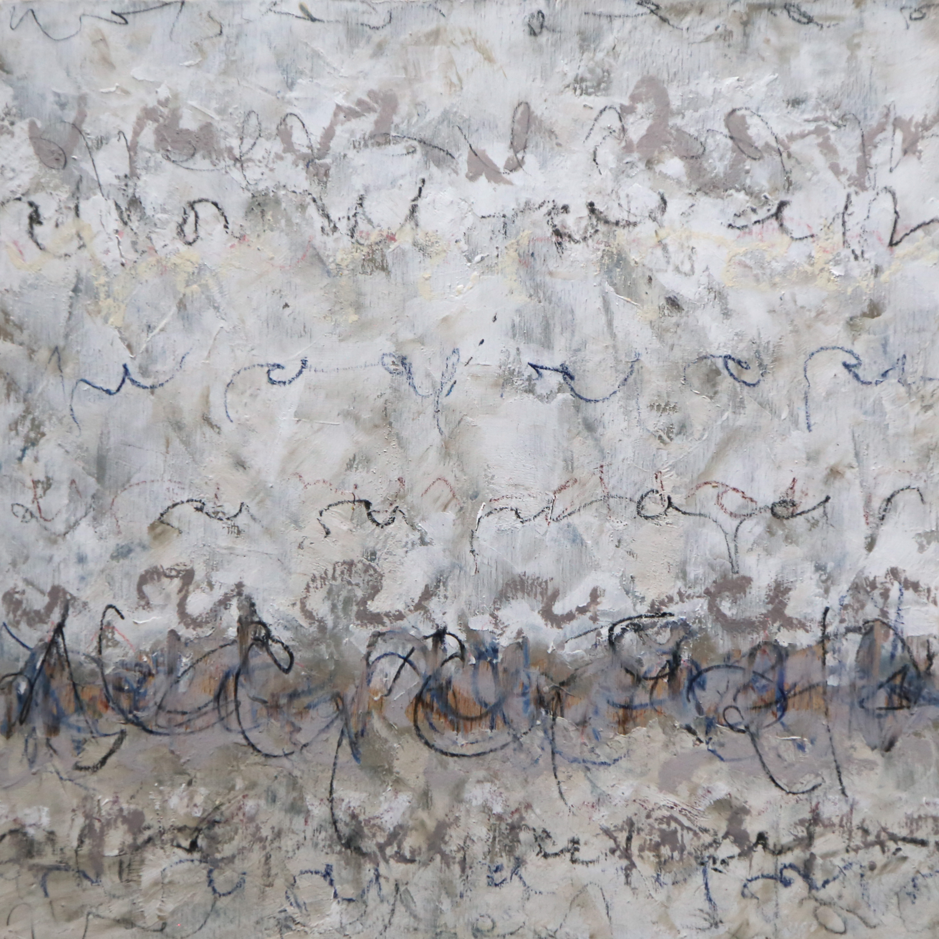 Weiss/Graublau | Acryl / Ölkreide auf Holz | 2014 | 15 x 15 cm | CHF 220.–