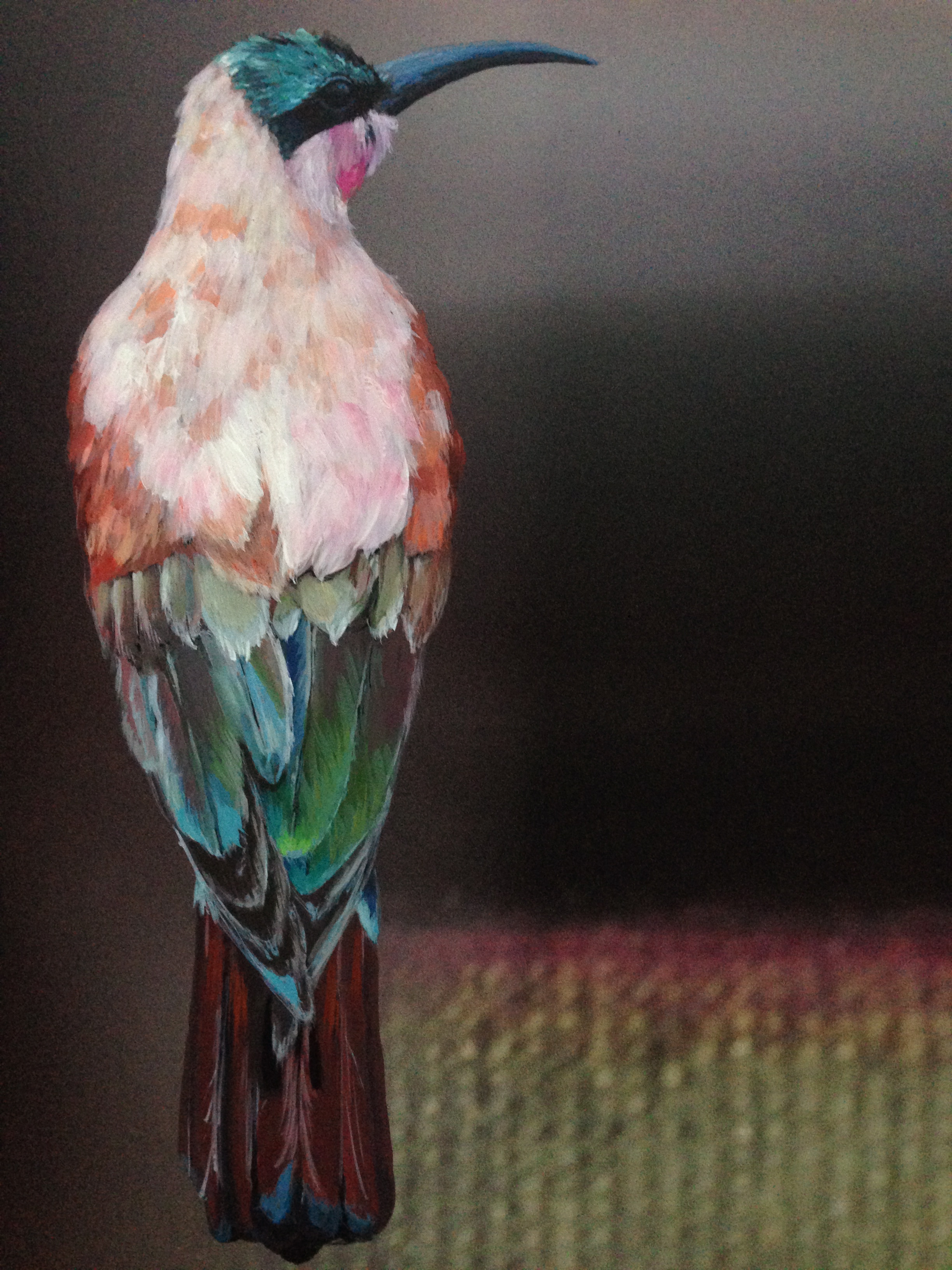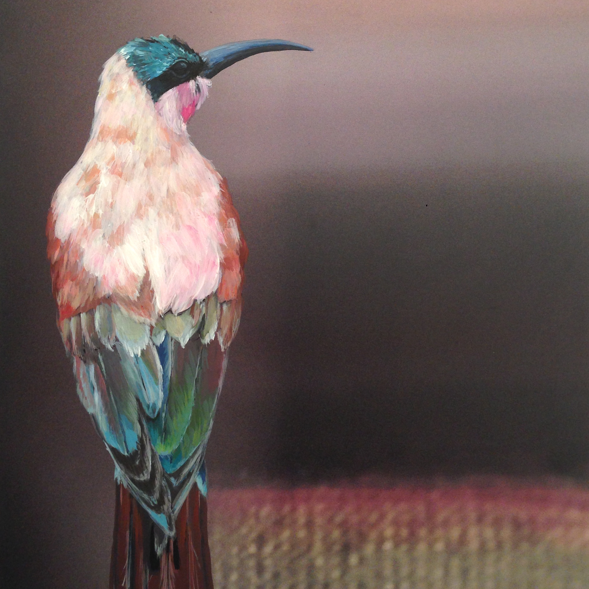 Southern Carmine Bee-eater | Acryl auf Aludibondfoto auf Holzkörper | 2016 | 20 x 30 x 5 cm | CHF 450.–