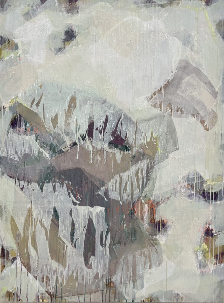 Zwischenschichten in hellmint und lilabeige | 89.5 x 119 cm | 2021 | Acryl/Pigment/Ölkreide auf Leinwand |