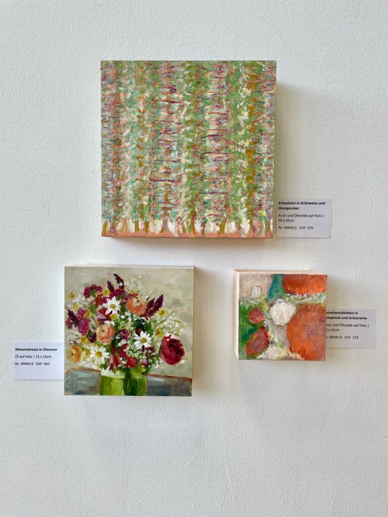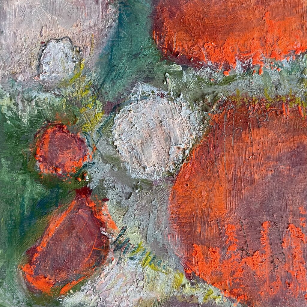 Zwischenschichten in rotapricot und grüncreme | 10 x 10 x 5 cm cm | 2021 | Acryl/Pigment/Ölkreide auf Holzkörper |