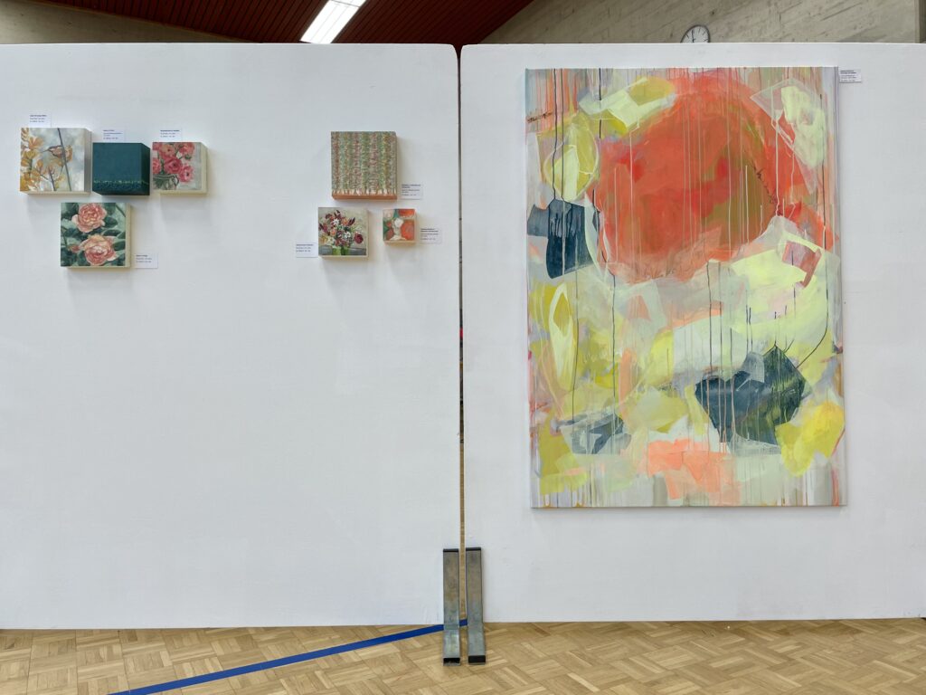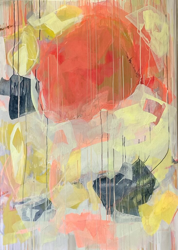 Zwischenschichten in rotorange und gelbgrün | 100 x 140 cm | 2021 | Acryl/Pigment/Ölkreide auf Leinwand |